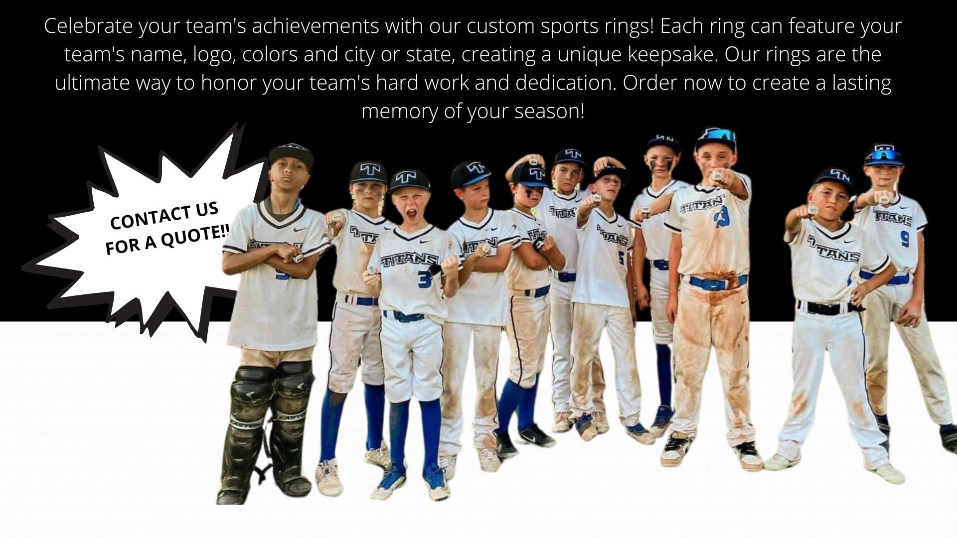 Celebrate your team's achievements with our custom championship rings! Rings can include: Team name, Logo, City and or State and your team colors. Our rings are the ultimate way to honor your team's hard work and dedication. Order now to create a lasting memory of your season!